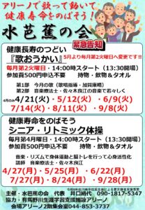主催:水芭蕉の会 協力/お問合せ:川崎市有馬・野川生涯学習支援施設 アリーノ 044-853-3737 |